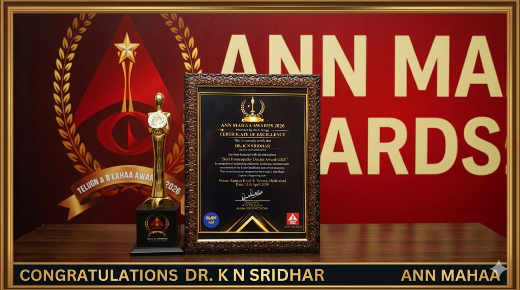 In a healthcare landscape where recognition is earned through years of dedicated service, genuine patient outcomes, and unwavering professional integrity, receiving a prestigious award is no small feat. On 11th April 2026, Dr. K. N. Sridhar — Senior Homeopathy Physician and Founder of The Art of Homeopathy LLP — was conferred the Best Homeopathy Doctor Award 2026 at the ANN Maha Awards, presented by ANN Telugu and Maha. The grand ceremony took place at the iconic Katriya Hotel & Towers, Hyderabad, bringing together luminaries from the business and healthcare sectors across the region.