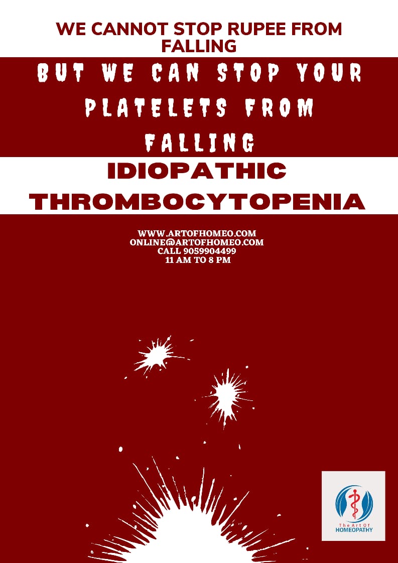 We at www.artofhomeo.com provide the best homeopathy treatment for Idiopathic Thrombocytopenia, we take the total case in detail and meticulously analyse it before prescribing. Our treatment is zero side effect and purely natural with no chemicals. We have the best homeopathy doctors in Hyderabad for the best Homeopathy Treatment ITP Idiopathic Thrombocytopenia purpura.